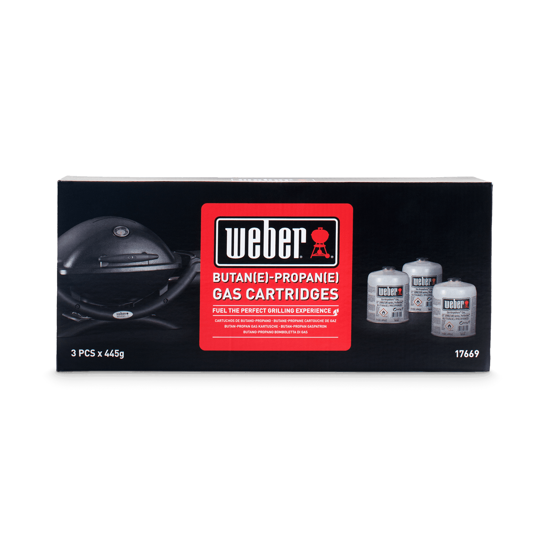 Disposable butane propane gas canister for use with q 100 1000 series performer deluxe charcoal barbecue go anywhere gas barbecue and summit charcoal series image for capacity demonstration purposes only.